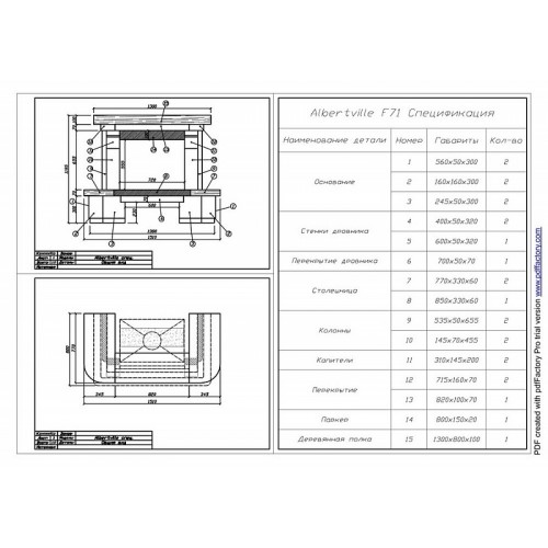 Ракушечник Dordogne, мрамор Travertino Yellow, полка из дерева Iroko. Параметры: Высота 119,5 см Ширина 151 см Глубина 77 см