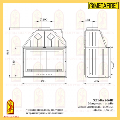 Каминная топка Мета Metafire Эльба 800Ш
