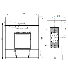 - Подвод конвекционного воздуха: поперечное сечение отверстия не менее - 600, при необходимости удалить съемные задвижки