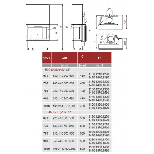 Каминная топка Kobok Corner 1050 VD R90-S/500 L/P