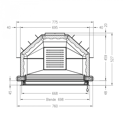 В топке имеется система длительного горения и система чистого стекла. Имеется возможность для подвода дополнительного воздуха из других помещений или улицы для процесса горения, что сводит к минимуму выжигание кислорода в помещении во время работы камина.
