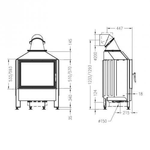 • Опциональная комплектация дополнительной задней дверцей для закладки дров из подсобного помещения.