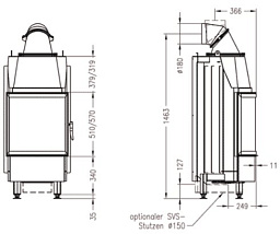 - Удобная скрытая ручка на дверце топки.