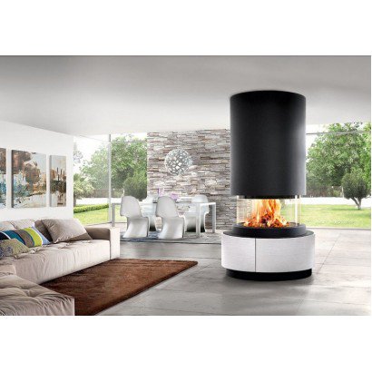 Камин со стальной опорой от итальянской компании Piazzetta подарит вам много интересных решений для вашего дома, так как Коллекция Panoramic – это модели современного характера, которые обладают необычайно привлекательными внешними данными, а также смотрятся великолепно и необычно в подходящем, стильно оформленном интерьере. Камин Oslo – это модель, которая отличается необычайно выгодными очертаниями. Она имеет центральное расположение кругообразной формы. Топка закрыта стеклом, и яркое пламя вы сможете увидеть также в круговой форме – полноценный просмотр пламени вам обеспечен. Его можно будет увидеть из любой точки комнаты. Камин сделан из высоколегированной стали и устанавливается на практичную стальную опору, покрытую серебристой эмалью. Остальная стальная поверхность покрыта черной эмалью. Топка в камине – это особенно красивое зрелище. Закрытая стеклянной жаропрочной поверхностью, такая топка сможет стать бесценным источником полноценного обогрева. Благодаря широкому формату топки, она сможет стать необычайно стильно оформленным средством обогрева, а также принять в себя большое количество дровяного топлива. Топа оснащена электронным механизмом – это еще одна современная разработка от мастеров из Италии Piazzetta – это спуск и подъем всей поверхности стекла. То есть ваш камин может быть как с открытой топкой, так и с закрытой. Это очень удачная разработка от мастеров, так как вам предоставляется выбор. Или ваш камин будет на максимально близком расстоянии предоставлять вам яркое живое пламя, или топка в камине будет закрыта и максимально безопасна в противопожарном плане. Тем самым, вам представится очень удачный выбор в плане обогрева дома. Ведь закрытая топка способна гораздо лучше обогреть дом, чем открытая, где горение сопровождается смешиванием со свежим воздухом.