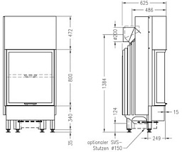 Цена на угловой камин указана в стандартном исполнении (см. чертеж) из указанных материалов без топки.