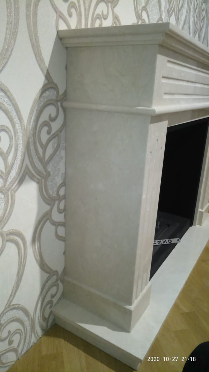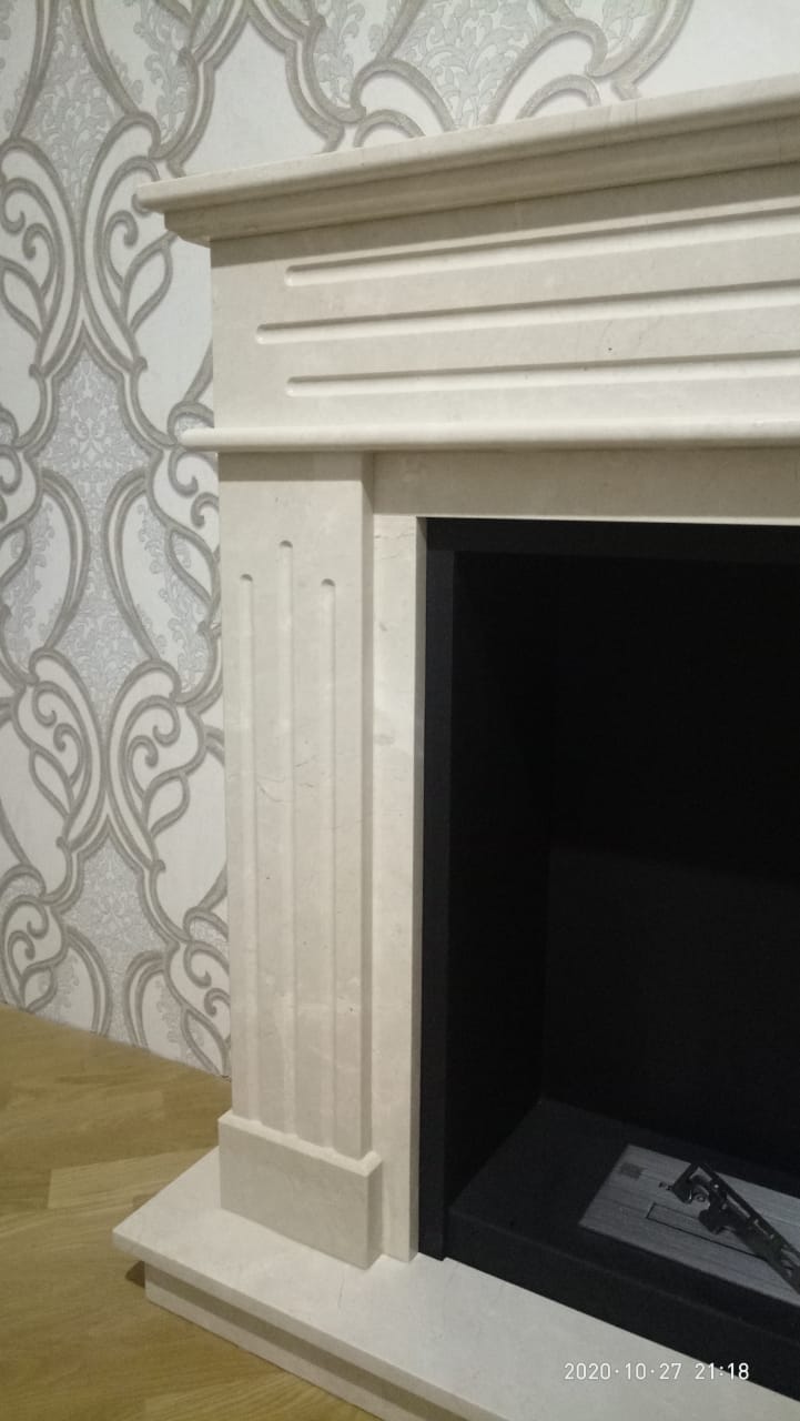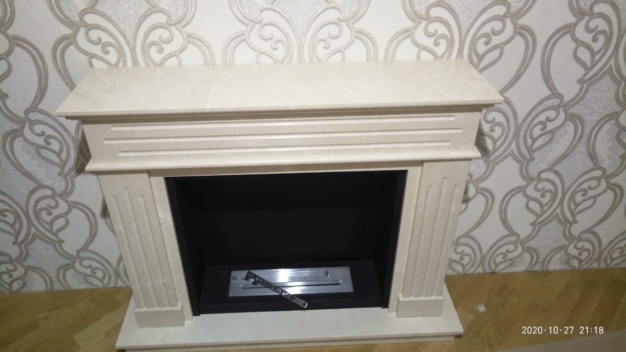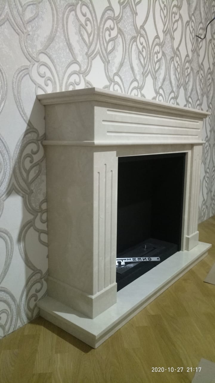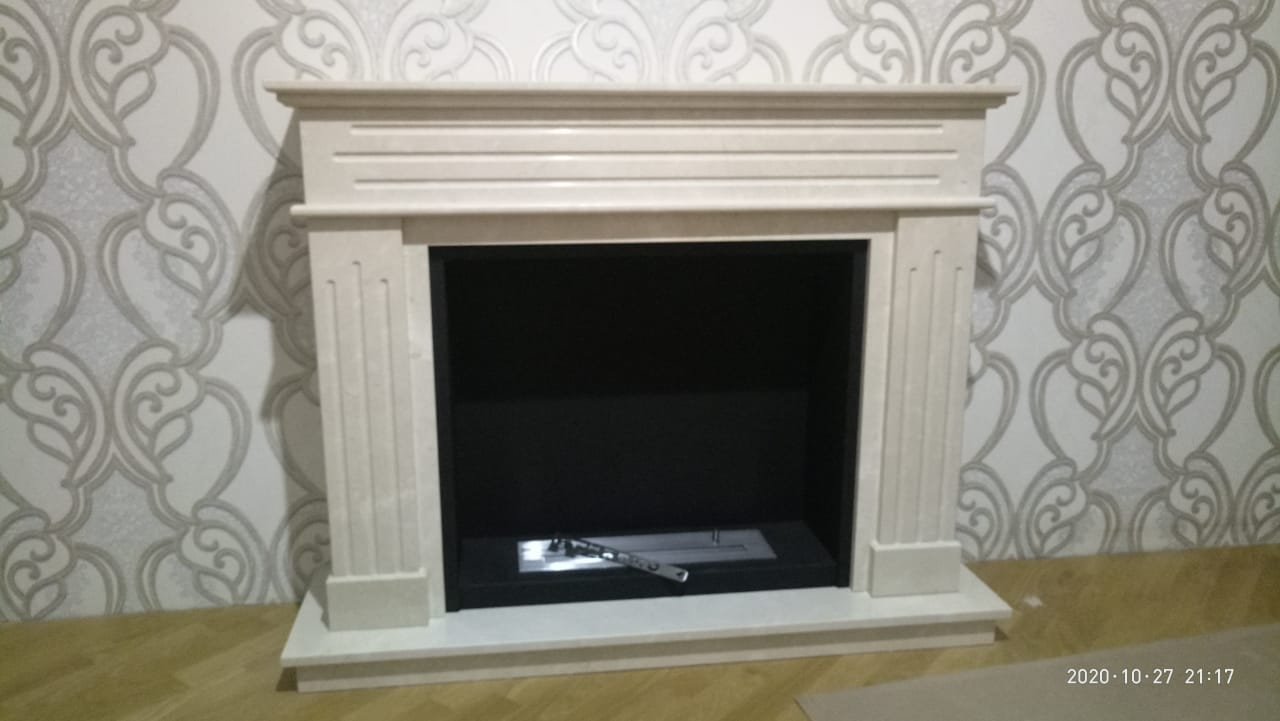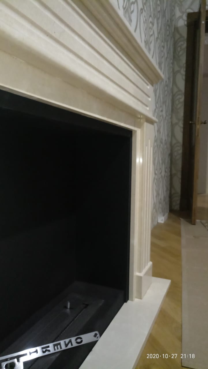 Биокамин с порталом Варшава. Выполнено по индивидуальному заказу. Портал Варшава отличает стильный дизайн, который можно использовать как в современных, так и в классических интерьерах. Для покраски применяется технология порошкового окрашивания, что гарантирует долговечность камина. Не требует дымохода, а при сгорании биотоплива не выделяется дым, запах, газы и вредные соединения. Очаг Firezo изготовлен из нержавеющей стали, выдерживающей высокотемпературный нагрев. Абсолютная безопасность эксплуатации. Модель мрамор CREMA MARFIL. Размер 122,5х101,3х32,3 см.